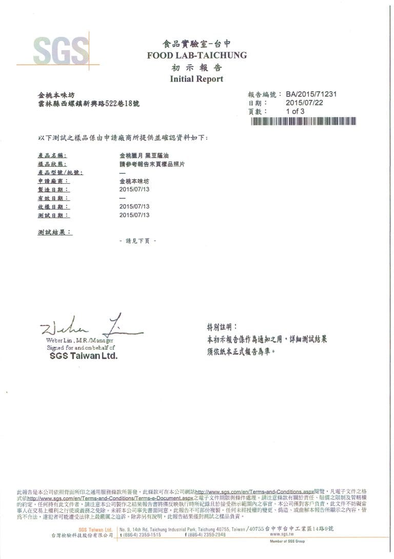 臘月手工柴燒醬油SGS檢測報告
