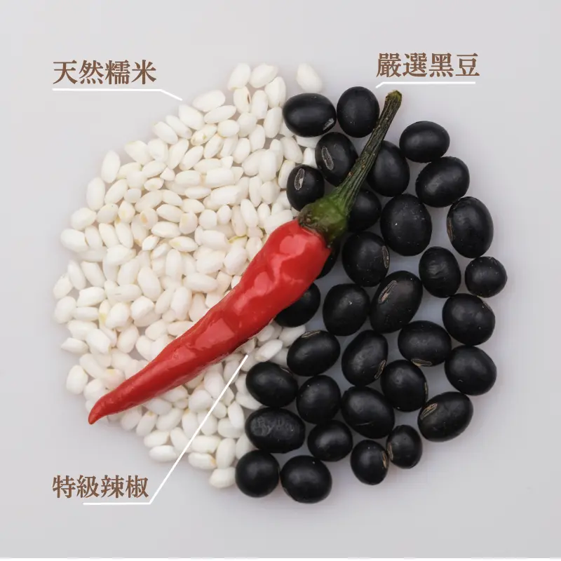 - 成分:水、黑豆、蔗糖二砂糖、澳洲湖鹽、糯米、辣椒粉、天然甘草、酵母萃取物、麥芽糊精、玉米糖膠